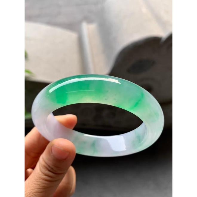 翡翠三色镯:东方美学的微型博物馆胖东来这款冰种阳绿翡翠镯,堪称“玉石界的调色盘”。缅甸矿区的天然A货料,在透如冰底的质地中,阳绿、紫罗兰与淡黄三色交织,恰似春日山野里同时盛放的嫩柳、辛夷与油菜花。这种“春带彩”现象在翡翠中极为罕见,每一毫米色带变化都是地壳运动的偶然馈赠。58mm的标准圈口经过手工打磨,内壁圆润如鹅卵石,佩戴时几乎感受不到重量。特别值得一提的是它的养生属性:《本草纲目》记载,翡翠所含的微量元素可通过皮肤缓慢释放,帮助稳定心率,尤其适合长期伏案、容易焦虑的职场人群