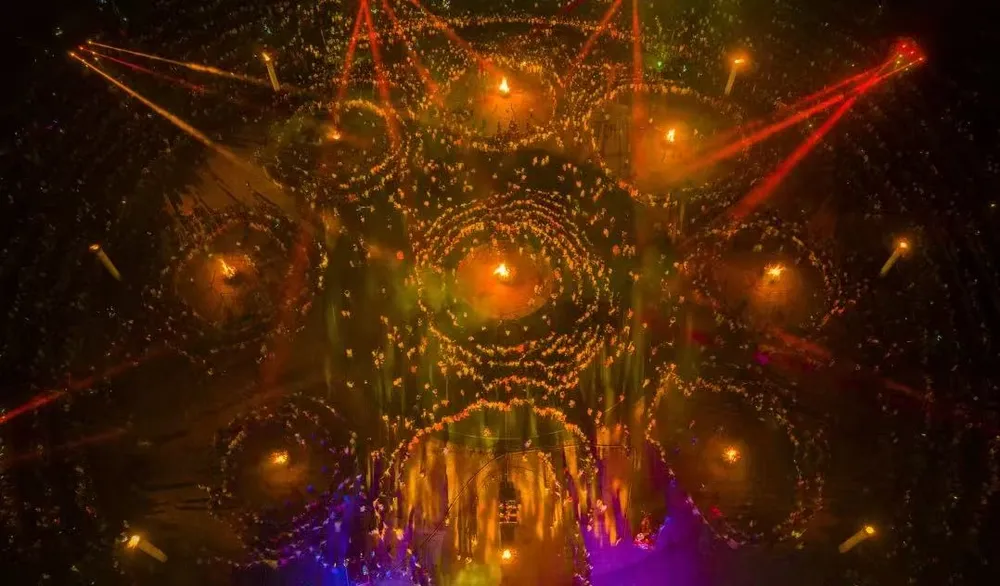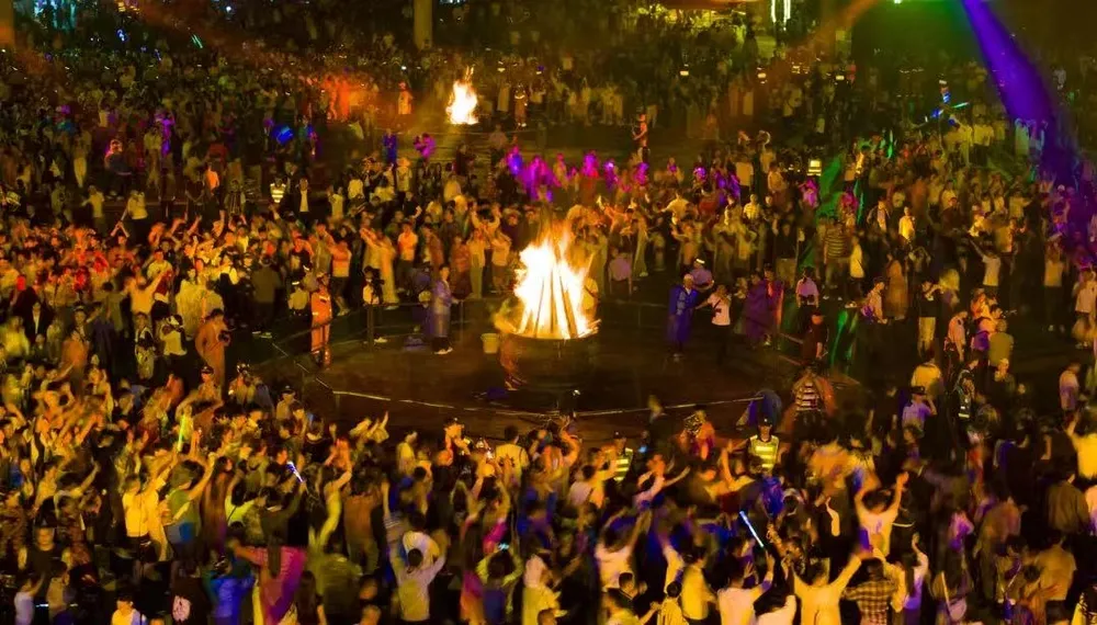 盛夏,海坪彝族火把季的篝火点亮夜空。一条条火龙在风中翻腾,一堆堆篝火熊熊燃烧。篝火之下,人们跳起达体舞,笑声与歌声汇成一片红色的火海。四个月后,火光退去,雪花落下。南方的艳阳里,全国纬度最低滑雪场的皑皑映出人们的笑颜;造雪机轰鸣,雪炮喷射,南国冰雪城的浪漫悄然绽放。